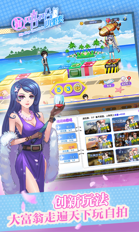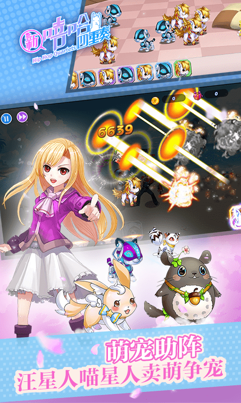 《新嘻哈四重奏》是一款职场题材的卡牌游戏。游戏清新都市画风,创新无时差回合制闯关玩法,各具特色的动态卡牌,Q萌神兽。以及轻松职场鲜明题材,组团出游,劳逸结合,霸气御姐,娇柔萝莉。男女搭配,干活不累。