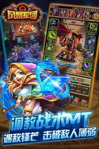 无创新,不手游,2015年创新级手机游戏《风暴军团》应运而生!掌中微操,轻松点击即可释放超强技能。仇恨系统,让战斗策略更加饱满,适当时机的仇恨切换,能改变整个战斗格局。要塞战,十将齐发,车轮大战,不到最后都不知鹿死谁手。公会魔物入侵,齐心协力,同时迎击,守住最后的阵线。超大型酷炫世界BOSS,每一击都畅快淋漓,让你高潮不断!