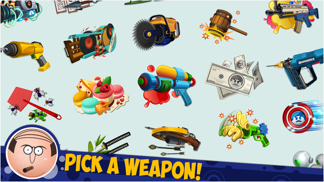 玩法很简单!选择想用的工具,对着老板往死里扔,往死里打!游戏的玩法提示很充足,可选的工具很多,抖S们兴奋吧!