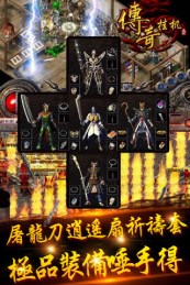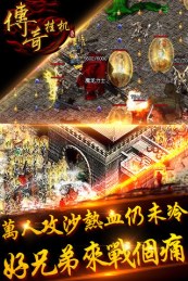 传奇挂机是一款自动挂机战斗的传奇RPG游戏。在这里打怪都是自动的,从你创建人物开始,就会不停的自动打怪,获得经验、金币和掉落装备!即使离线也不会停! 你将从新手村的小鸡小鹿开始新的传奇历程,装备上裁决、骨玉、龙纹甚至屠龙宝刀,不断的挑战!祖玛教主,沃玛教主,赤月恶魔...BOSS们都揣着满满的宝贝在等你哟!