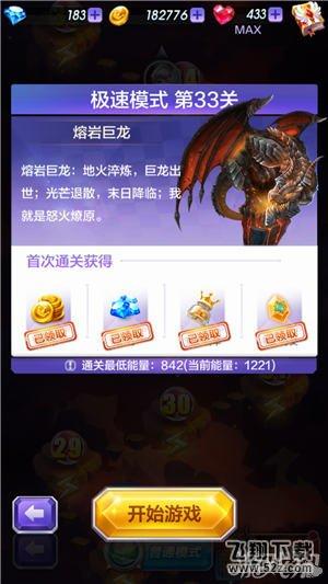 推荐理由:极速模式第33关是BOSS关卡,我们的通关目标是击杀第33关BOSS熔岩巨龙,所以加分的宠物对于通关来说并没任何帮助,而绿野仙踪的技能可以复活,可以让人物的续航能力提高。因为本关是BOSS关卡,人物的技能无法发挥出来,本关关卡不为大家推荐人物以及滑翔伞。