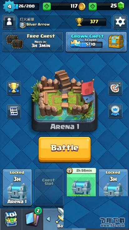 金币和宝石的获取统一途径有开宝箱,宝箱有左侧3小时回复一个的木箱子,还有皇冠宝箱,收集10个皇冠既可得一个金箱子,能开出宝石(按几率)。
