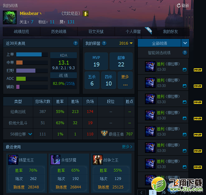 先给大家看看效果图,一排排位赛连胜,而且还是使用的新英雄奥瑞利安索尔,是不是很装逼呢?