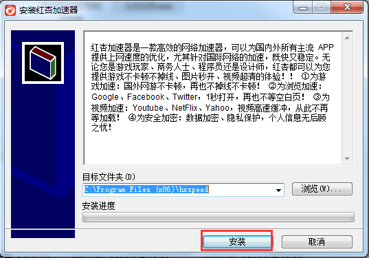 请先登录官网下载windows版的红杏加速器,在本地文件夹中找到“红杏加速器.exe”双击安装;