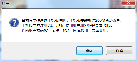 安装成功后,您需要先登录才能有流量使用。新用户需要先在手机客户端上注册一个账户,才能在电脑上登录。