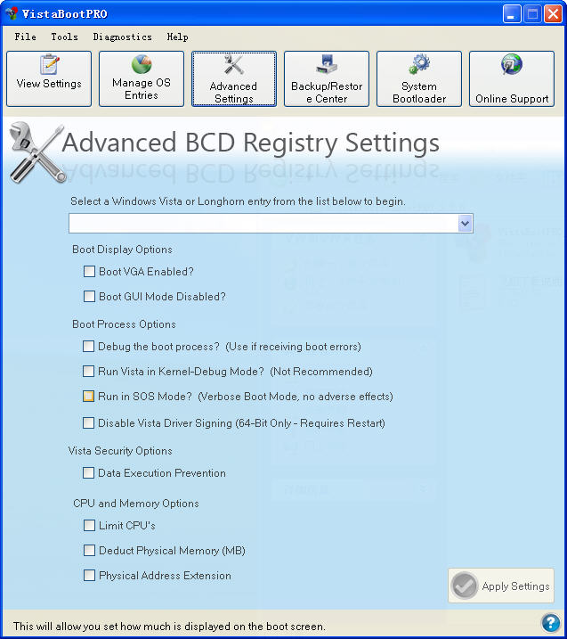最初,使用的VistaBootPRO的理由就是它可以对付难缠的BCD(Boot Configuration Data)存储,而无需使用复杂的命令行操作bcdedit.exe文件。