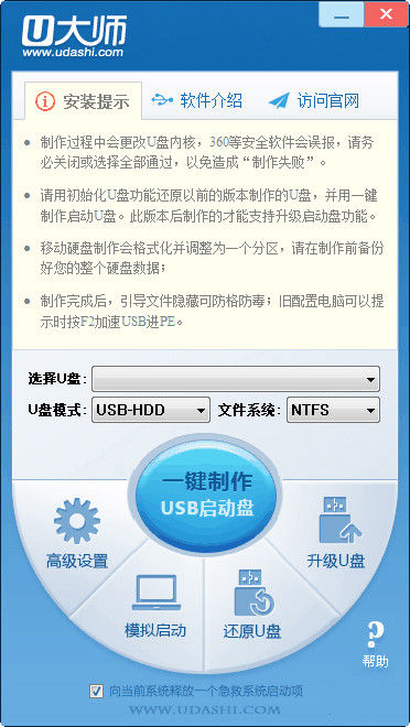 5、随时更换系统,轻松便捷:解决自制引导盘和光驱无法更新系统的问题,U大师引导盘帮你随时自由更换系统,一键安装,轻松快捷。