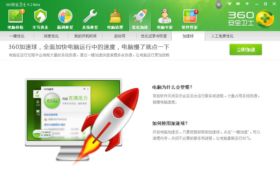 6、优化加速——加快开机速度。 360安全卫士8.6beta版