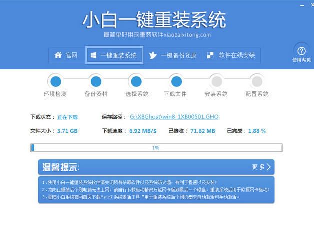 小白一键重装系统是一款最受用户青睐的快速系统重装软件,无需任何技术基础都能自己给电脑装系统,系统重装步骤简单易操作。小白一键重装系统软件能够快速实现一键重装系统win7、一键重装系统win8、重装系统xp,真正的系统重装大师。有了小白一键重装系统软件,简单的系统重装步骤让你无需再为电脑系统重装烦恼,同时小白软件的数据一键备份还原/系统一键备份还原功能为你重装系统保驾护航!