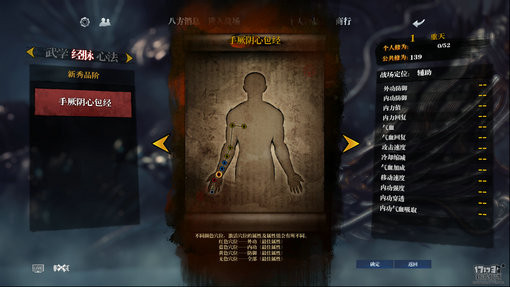 既然是继承自同旗下的端游九阴,那么在端游中的养成元素自然是少不了的。游戏中,英雄有心法和经脉的设定。经脉通过开通提升属性值,来略微强化英雄的能力。在打通经脉的穴位以后,会出现多项可升级选项,从外功防御到攻击不等。系统会根据所选英雄的定位,重点标示出符合角色自身定位的穴位属性。心法则类似,通过游戏或者商城购买的方式解锁,用以提升6大属性。