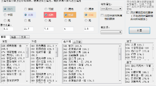 是一款由小数点团队的奇迹暖暖服装属性计算器