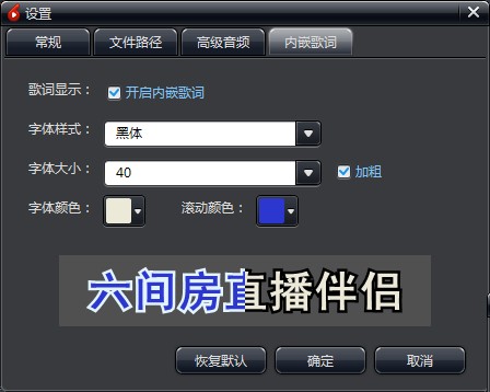 3、海量曲库:直播伴侣配置海量曲库,桌面歌词穿透其他窗口,可按需调整字体样式。智能的K歌伴唱功能,简单易操作,让你随时体验KTV的专业效果。 直