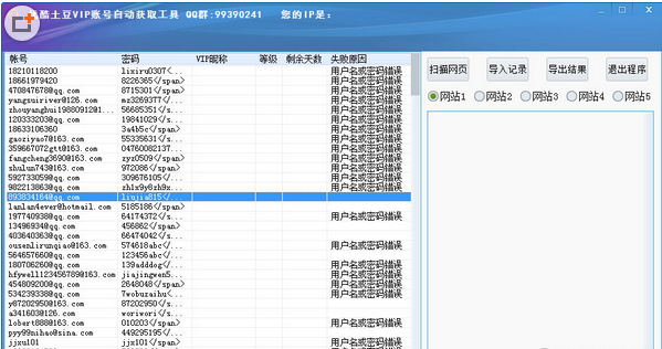 软件会全自动扫描接口共享的优酷土豆帐号(优酷土豆是一家,帐号通用),然后扫完就开始批量验密了