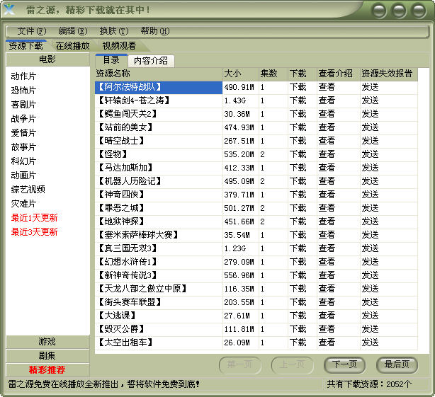 雷之源是一款基于迅雷下载器(支持Http、Ftp、Mms、Https等协议)的资源提供辅助软件。绝对强大的下载技术,绝对领先的免费电影、音乐Mp3、动漫等多媒体分享平台。基于迅雷200万同时在线的用户,是中国最大的电影、音乐分享平台。全新界面,提供大量皮肤适合各类人群。简约设计风格,傻瓜性的操作让大家从繁琐操作中解脱出来。强大的搜索功能,在众多的资源中找出您想要的资源。最重要的是大家可以感受到我们的服务,永远的免费,永远的快速更新!