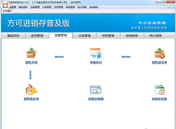 方可进销存普及版是一款功能强大的商业贸易进销存企业管理软件,集采购管理、销售管理、仓库管理、财务管理、日常收支管理、银行帐户管理为一体。采用先进的进销存管理理念来设计,操作流程清晰、界面简洁大方、易懂易学、无需专门的培训,无需专业的财务知识也可以轻松管好帐。方可系列软件均采用国内领先的导航式查询界面,完全傻瓜式的操作,只需用鼠标点击即可完成大型复杂的查询工作。是一款成熟、稳定的商业贸易进销存软件。