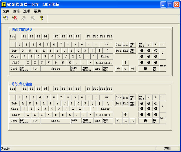 键盘修改大师:玩游戏不能自定义键,不舒服吧,有了它,不用怕,想换哪个就哪个.键盘坏了不用怕。有它替换就行了。现在什么游戏都可以:自定义热键了键盘坏了几个怎么办?没关系,有它就OK啦,把坏的键位全部替换掉