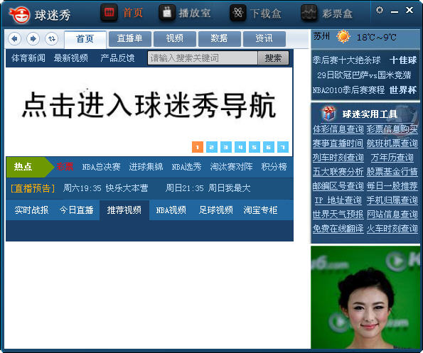 球迷秀是一款纯绿色软件,专为球迷量身打造,体积小,功能全,集普通下载,预约下载,赛程预告,比分播报等众多功能于一身。贴心的全自动预约订制下载功能,轻点鼠标,赛事即可下载到您的电脑之中,免去您自行寻找下载地址的烦恼,节省您宝贵的时间。全高清的赛事资源,让您体验赛场最澎湃的激情,带给您最真实的现场感受