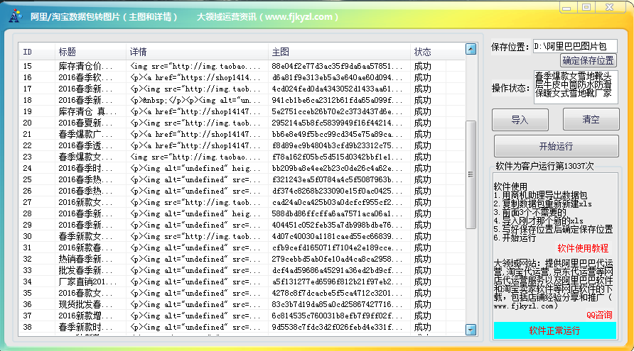 专门为商家提供的数据包转换成图片包,只要用商机助理把自己店铺的宝贝导出来,然后在借助这款软件进行转换成图片,方便了商家操作