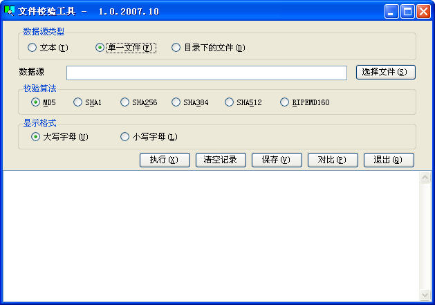 本工具可以计算文本(Unicode), 单一文件, 文件夹(及子文件夹下的文件的校验码. 结果可以单独保存. 也可以将校验结果与保存在文件中在校验信息进行对比, 从而找出不同的文件.