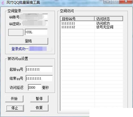 风竹QQ批量留痕工具是一款方便易用的qq留痕软件。该软件支持批量账号进行qq空间留痕,很适合一些qq推广人员使用!