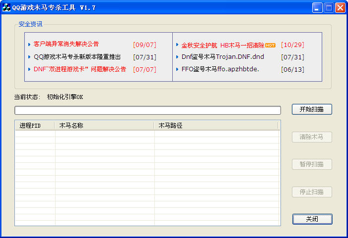 我们并会持续更新,请您随时关注QQ游戏木马专杀工具更新状态。