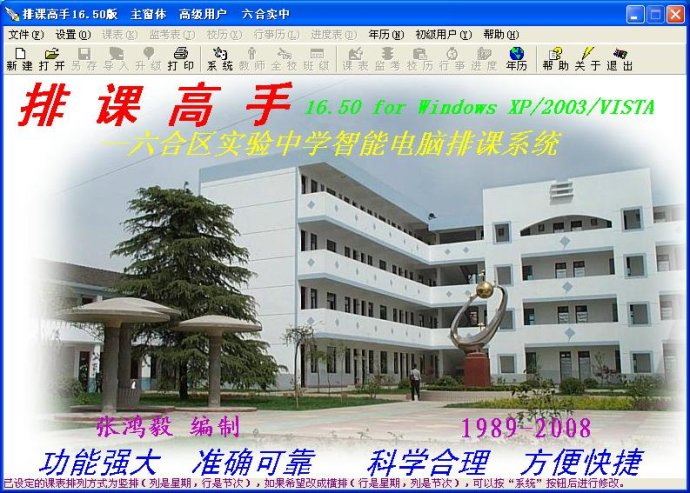 辅助功能:编排打印监考表;编排打印校历、行事历、进度表;分别统计正课和补课的教师工作量和课时津贴。