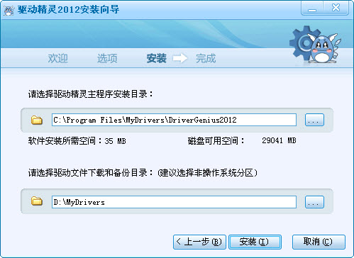 您可以自由选择驱动精灵的安装路径,也可以对驱动精灵的驱动备份、下载目录进行配置。我们建议您把备份和下载目录设置在非操作系统分区,这样在重新安装操作系统时可以保证驱动文件不会丢失。