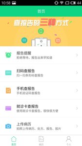 扫条形码,手机验证,就诊卡查报告;