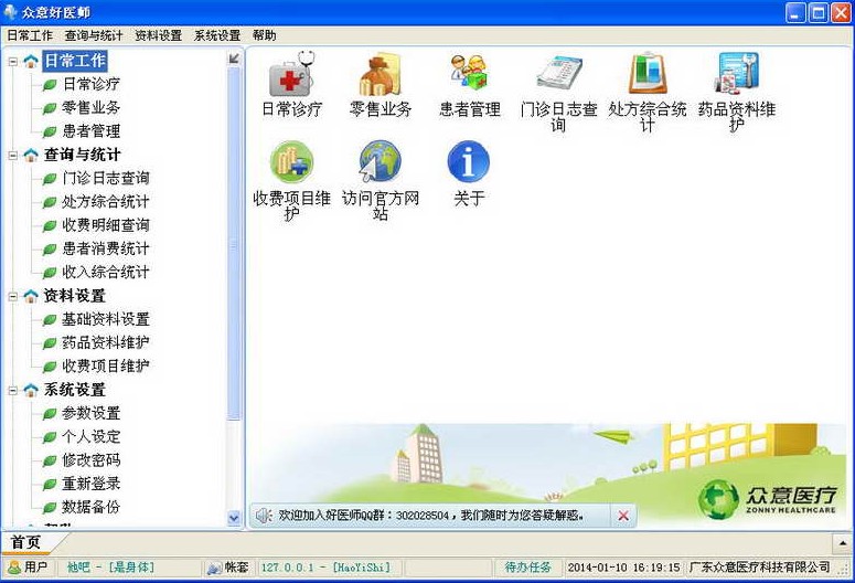 众意好医师具有全科诊疗、统计报表、医疗维护、医学助手等功能,它多渠道采集居民基本信息,通过医学助手快速完成门诊电子病历及处方,并打印电子病历和纸质处方,协助管理患者的病历处方、管理日常收入、管理患者资料,全面帮您管理各种医疗资源,做您的能够管家和贴心助手。