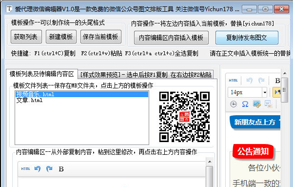 爱代理微信编辑器是一款免费的微信公众号图文排版工具。软件为微信在线编辑器改编而来,可以制作模板保存在本地,方便多图文编辑,能统一格式。