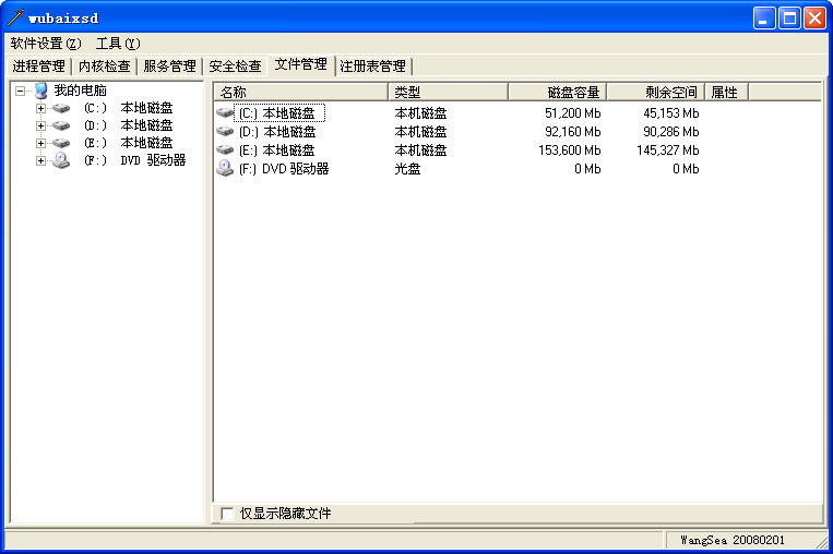 文件搜索中的“保存文件列表”导出搜索结果列表1,在PE启动后再执行一次得到结果2,将结果1与结果2相比较,可以用来对付某些Wsyscheck检测不出深度隐藏的RootKit。