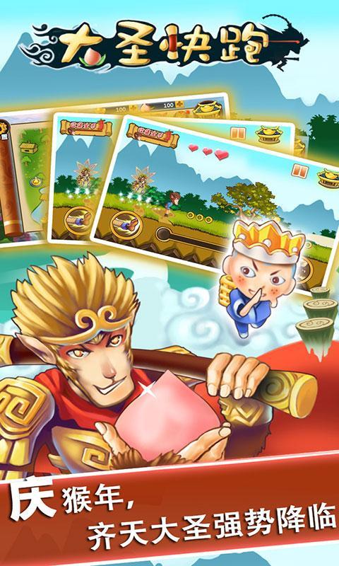 《大圣快跑》是一款的极具中国风的休闲跑酷游戏。本领高强的齐天大圣带领多位各具神通的宠物,一路斩妖除魔,荡平危害世人的妖魔鬼怪!激烈的战斗之余,玩家也可以在财神下凡中试试自己的手气,更有天官赐福免费领取奖励哦!
