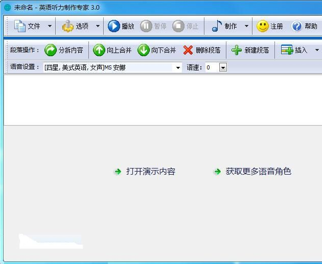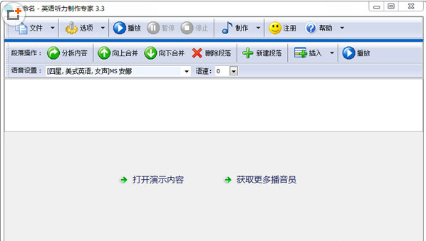 英语听力制作专家软件是一款专为外语听力语音资料制作而设计的专业型语音产品,可制作英语、日语、韩语及中文在内的,多种外语听力资料。软件配套有第三代“高保真”真人语音内核,发音清晰纯正,您只需导入文字内容,即可制作成效果出众的语音资料,完全替代了成本高、制作复杂、效果参差不齐的传统人工录制方式。是一款完美的听力资料制作软件,已广泛应用于各级院校、培训机构、出版机构。