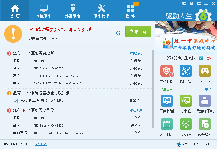 4、提供免费的驱动安装及更新,保护电脑硬件驱动程序