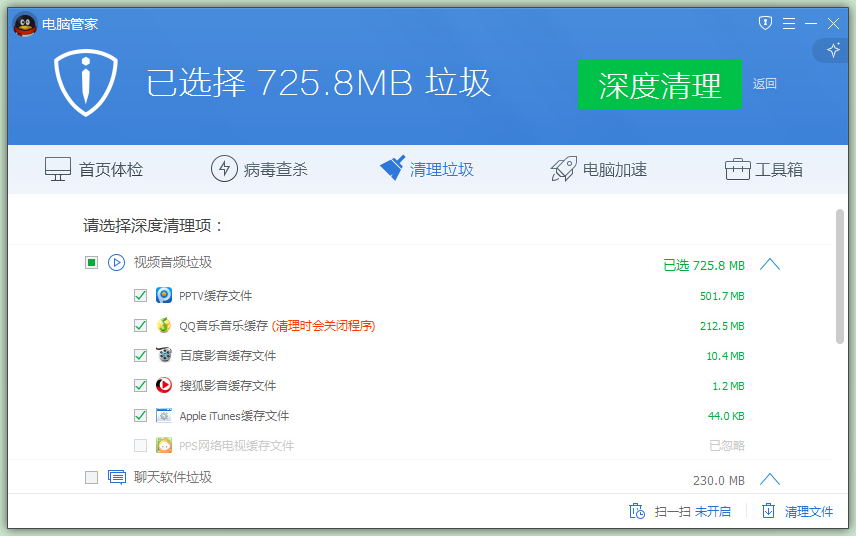 深度清理电脑垃圾、冗余文件;