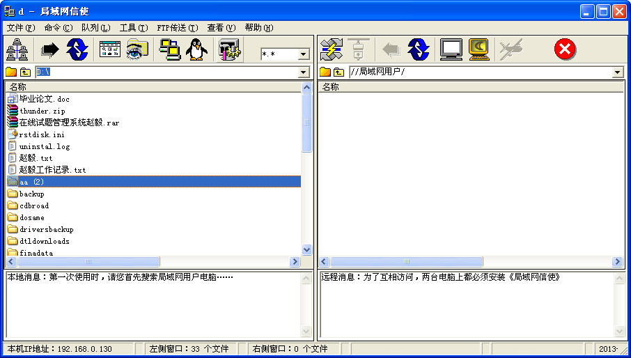 (3)假如有两台电脑分别安装了windows7和xp系统,很多人可能不会设置“网上邻居”进行互访,或者说共享文件夹里面没有你想要的文件,还要经常修改共享目录,现在《局域网信使》可以跨越两种操作系统平台,直接传输任何文件夹。