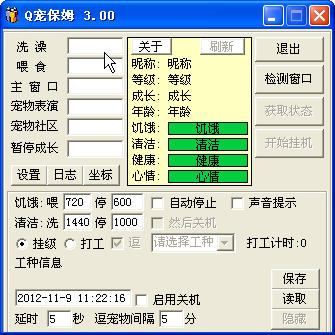qq宠物管家的功能优点: 1、自动喂食、自动逗宠、自动打工、自动治病,免费成为你的宠物管家替你照顾好你的宠物,实现电脑自动化养宠。 2、支持检查库存,没有物品的时候进行购物然后再喂养。 3、支持自动购物,以保证没库存时宠物不被暂停成长。 4、支持批量购买,减少连接服务器的次数,大大的降低了宠物由于网络问题也被暂停成长的机率。 5、支持不弹出窗口进行喂养操作,让使用的用户不会觉得喂养弹出窗口很烦。 6、支持检查元宝,可以设置宠物的元宝低于多少时进行打工,如果大于设置值时那行进行休息好好成长。 7、支持实时显示宠物的升级剩余成长值、武力、智慧、魅力、爱情值、元宝和q币 8、软件不会抢鼠标,不存在任何影响鼠标的操作。 9、软件可以模拟人工在线,当人不在的时候tx也无法检测到计算机空闲状态 10、支持直接使用软件与牛翔进行比赛,节省资源 11、拥有物品仓库,可以查看所有宠物的仓库库存情况。一目了然 12、目前唯一一个支持2种代理,即http代理服务器和socket5代理服务器的qq宠物软件 13、支持自动治病,当宠物病了的时候软件会自动带你的宠物去看病然后进行医治 14、支持连续打工,智能选择工种。 15、使用智能时间ai算法,使得喂养打工的时间是没有固定不变的规律。 16、软件完全免费 17、方便的在线升级功能 18、绿色软件,要就用,不用就直接删除了 19、友好的界面,非常漂亮的界面 20、定时关机功能,当到达你设置的指定时间时,将自动关闭计算机。当您喂养的所有宠物都暂停成长时,软件将自动关闭您的计算机。 21、打工次数限制,可以设置打工达到8次后关闭计算机或宠物退出或宠物只挂机不再进行打工的功能