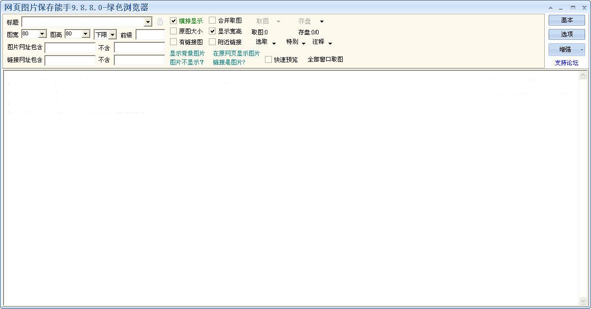 11)6.0可以处理图片外部链接,通过小图来获取大图。增加自动获取图片,包括自动点击取图,定时间隔取图,多网页合并取图。