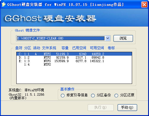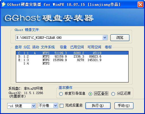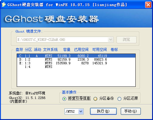 GGhost硬盘安装器用于把硬盘上已有的ghost镜像文件,恢复到任意硬盘分区,也可用于系统备份;WinPE专用版内置ghost32 v11.02,当前目录下的ghost32.exe优先于内置版本。