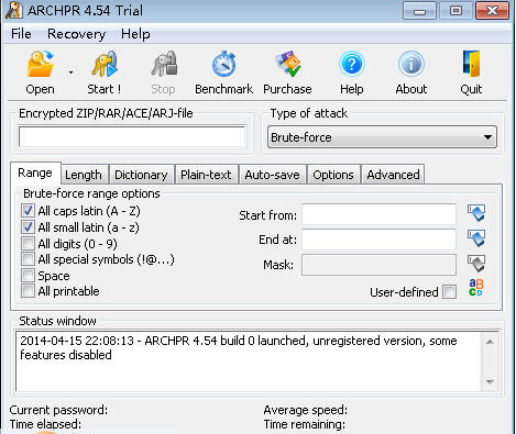一个速度很快,可以帮你找回RAR文件的密码,注册后可以解开多达128位密码。它提供有预估算出密码所需要的时间;可中断计算与恢复继续前次的计算。