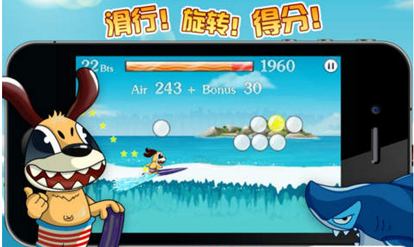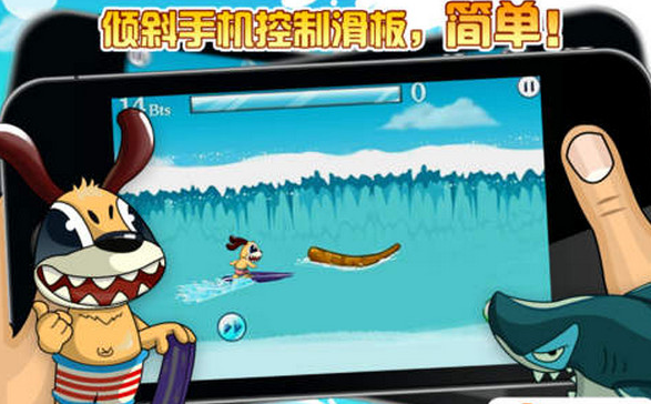 夏威夷冲浪赛开始啦,达比准备好了没?玩家需要控制达比躲避海上各种障碍物,冲得越高分数就越高哦。