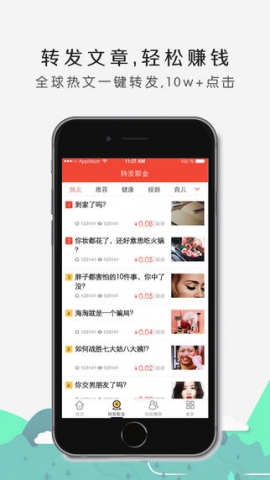 1.【转发赚钱】唐三赚聚集上万篇热门文章,每日阅读量超10万+,分享文章到朋友圈或转发给好友,好友阅读 即可产生收入,单次阅读高达0.1元,看的人越多收入越高,满30即可提现,每天5分钟,月入过万不是梦!