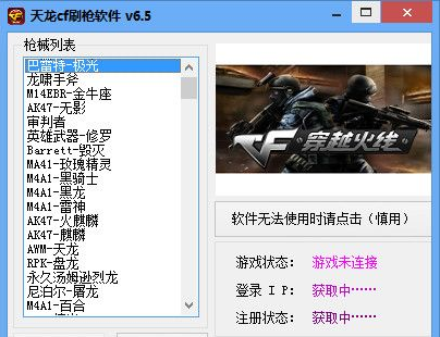 天龙CF刷枪软件是一款免费实用的穿越火线刷枪软件,此款辅助能够帮助用户刷取龙啸手斧、M14EBR金牛座、AK47无影、审判者等稀有神器。