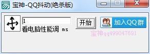 宝神qq无限抖动器绝杀版是一款专为QQ用户打造的无限窗口抖动工具,这款软件可以帮助你恶搞好友,使用之后就可以让对方的QQ无限抖动,突破QQ窗口抖动的时间间隔限制,3秒可刷抖动99+次,喜欢恶搞朋友的用户快来试试这款宝神qq无限抖动器吧!