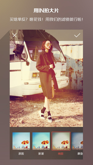 in拍照软件拥有海量的照片贴图以及滤镜,让你的照片不再平庸,后期处理,让照片的生活更加的多姿多彩,记录每一刻,分享每一刻,in满足你。软件拥有独特的大头功能,让你分分钟恶搞朋友;新增了贴纸收藏功能,让贴图更加方便!软件支持微信登陆哦,喜欢在朋友圈晒图的朋友可不容错过哦!