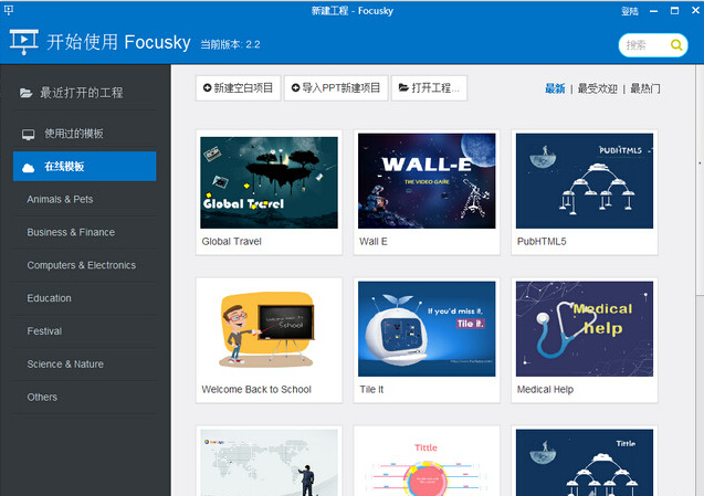 Focusky提供了一套丰富的漂亮模板和主题与预先设计的框架,它可以用来构建不同风格的演讲为不同的目的。没有设计能力要求,只需将您的内容!一个引人入胜的动画演示出来轻松,快速地与Focusky模板和主题。