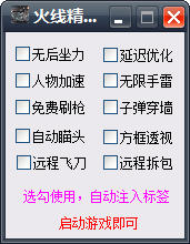火线精英方框透视辅助,主要向玩家提供无后坐力、人物透视、远程飞刀、自瞄爆头等实用功能,喜欢玩火线精英的朋友可以下载使用!