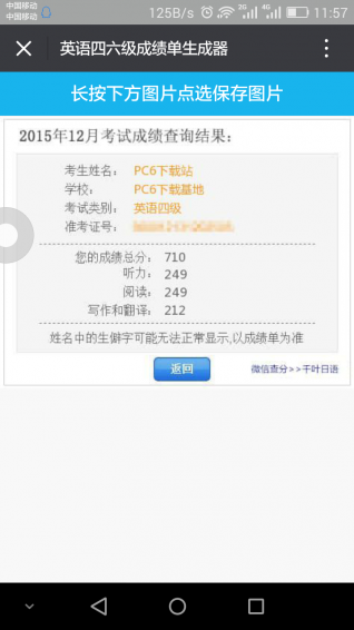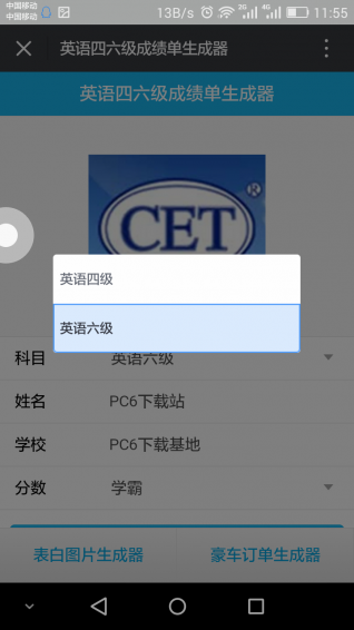 是一款最近微信朋友圈非常火的英语四级成绩单生成软件