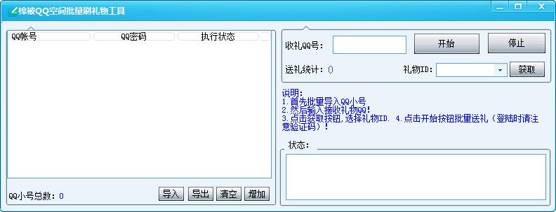 棉被QQ空间批量刷礼物工具是棉被软件工作室2016年最新推出的空间人气软件,这款软件的主要功能就是帮助广大QQ空间用户批量刷空间礼物工具,还担心空间人气不够高吗,想要体验一下每天有人送空间礼物给你的感觉吗?那就来试试这款棉被QQ空间批量刷礼物工具吧!