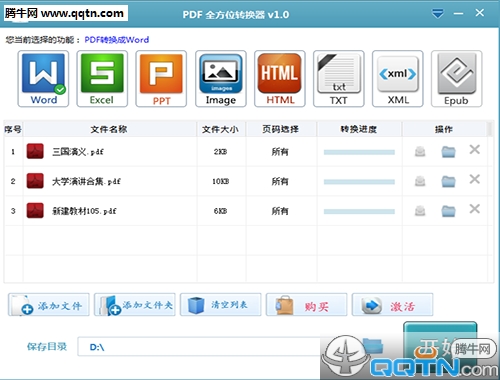 PDF全方位转换器是一款多功能PDF转换器,这款工具非常强大,整合了各种办公功能,软件可以帮助你将pdf文件快速批量转换成Word、Excel、PPT、图片、文本、HTML、Epub、XML等格式的文件,让你的工作更加高效、更加轻松。